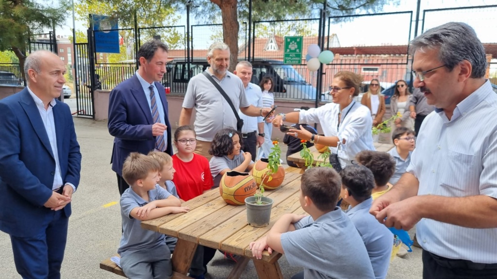 İlçe Millî Eğitim Müdürümüz Abdullah Şahin, Şube Müdürümüz Aydın Narin ve okul müdürleri, öğrencilerle birlikte etkinliğe katıldı. Millî Eğitim Bakanlığımızın "Yeşil Vatan" teması kapsamında düzenlenen etkinlikte, kullanılmayan basketbol topları geri dönüştürülerek saksı yapıldı ve öğrencilerle birlikte çiçek dikildi. Ayrıca atık malzemelerden yapılan birbirinden farklı tasarımlar etkinlikte sergilendi.